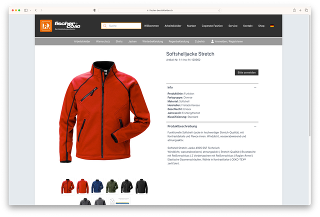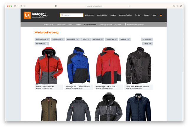 Konzept und Programmierung des B2B Online-Store des Spezialisten für Arbeitsbekleidung Fischer + COAG.