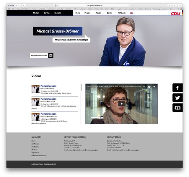 Konzept, Screendesign und Programmierung der Internetseite des Ersten Parlamentarischen Geschäftsführers der CDU/CSU Bundestagsfraktion
