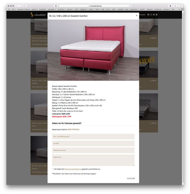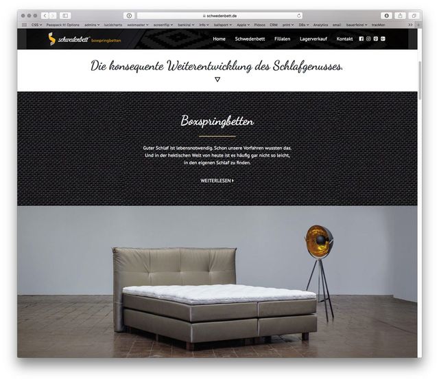 Konzept, Screendesign und Programmierung der neuen Internetseite des Marktführers für Boxspringbetten "Schwedenbett"