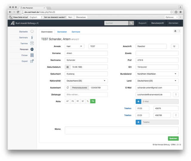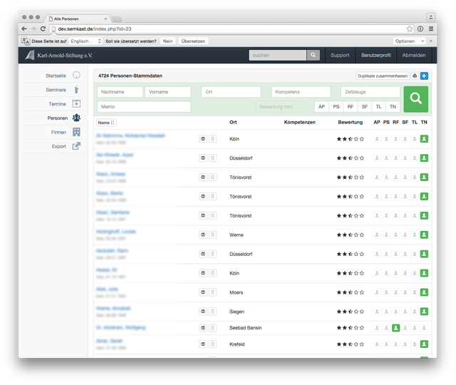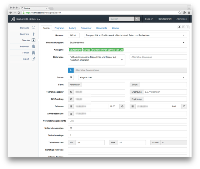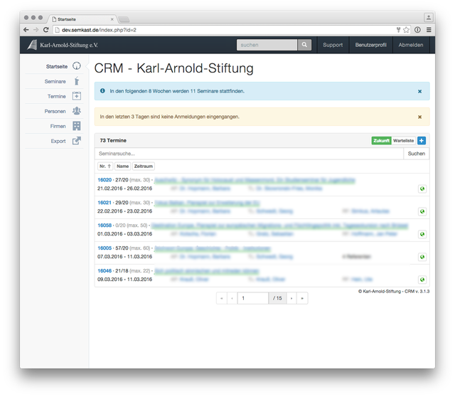 Entwicklung eines Kunden spezifischen Customer Relationship Management Tools (CRM) für die komplette Teilnehmer- und Seminarverwaltung