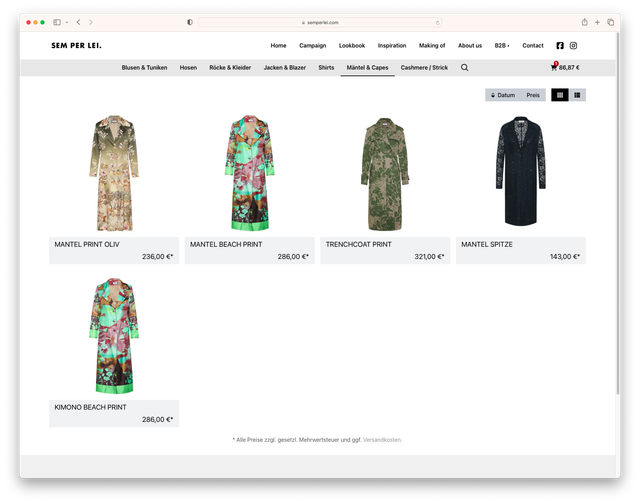 Konzept und Programmierung des B2B Fashion Online-Shops SEM PER LEI der Peter Lohèl Mode GmbH.