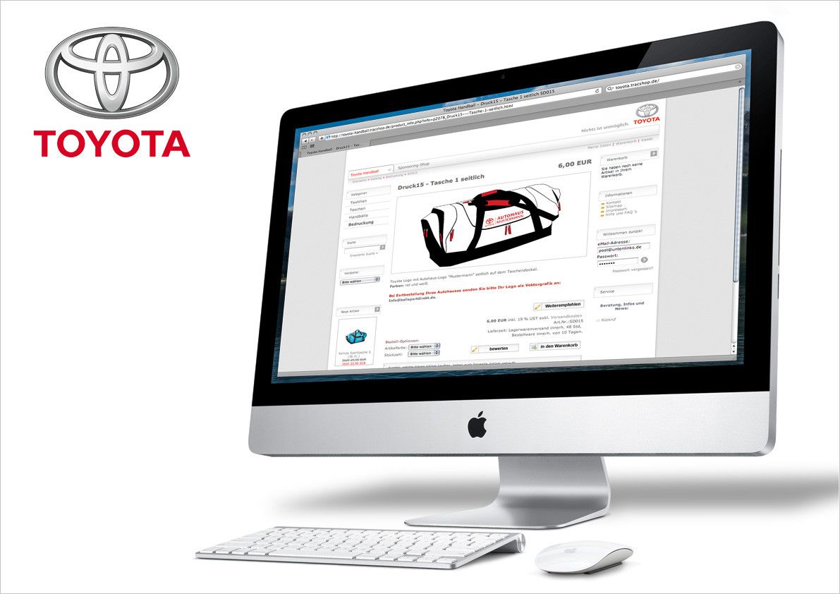Onlineshop Lösung zum Verkauf von gebrandeten Trikots und Ausrüstungen mit Toyota Sportsponsoring sowie Mitarbeiter Sales mit Toyota Produkten
